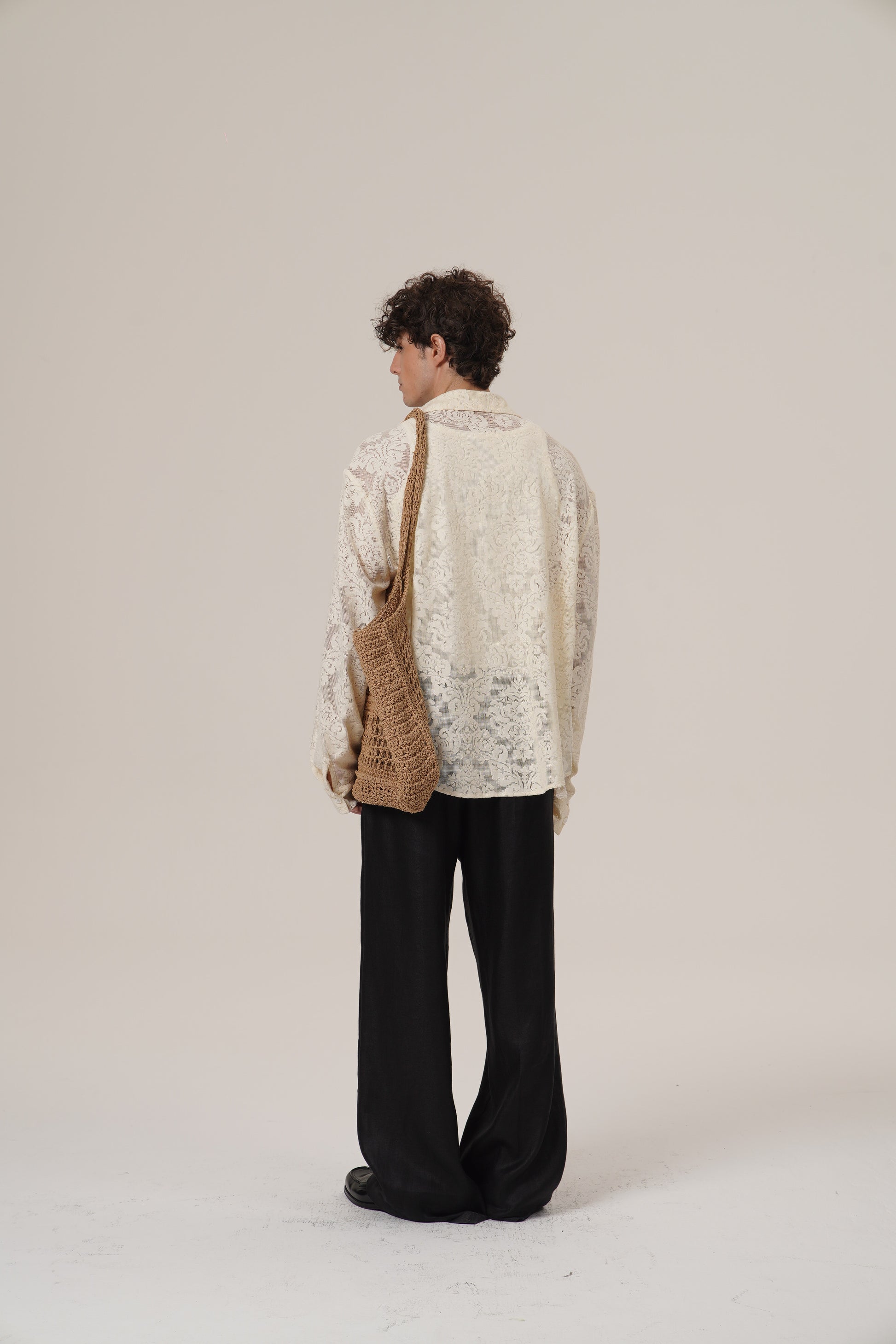 Retro 21 R21 Custom openwork pattern beige long-sleeved shirt