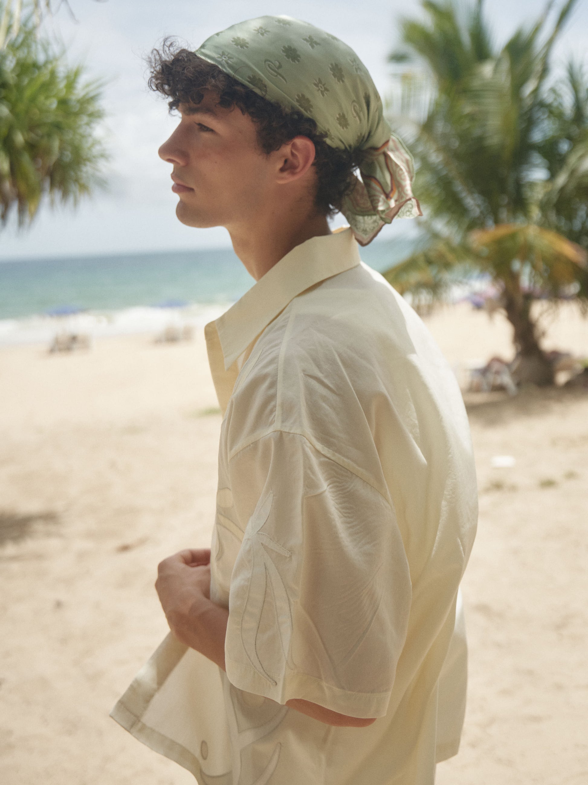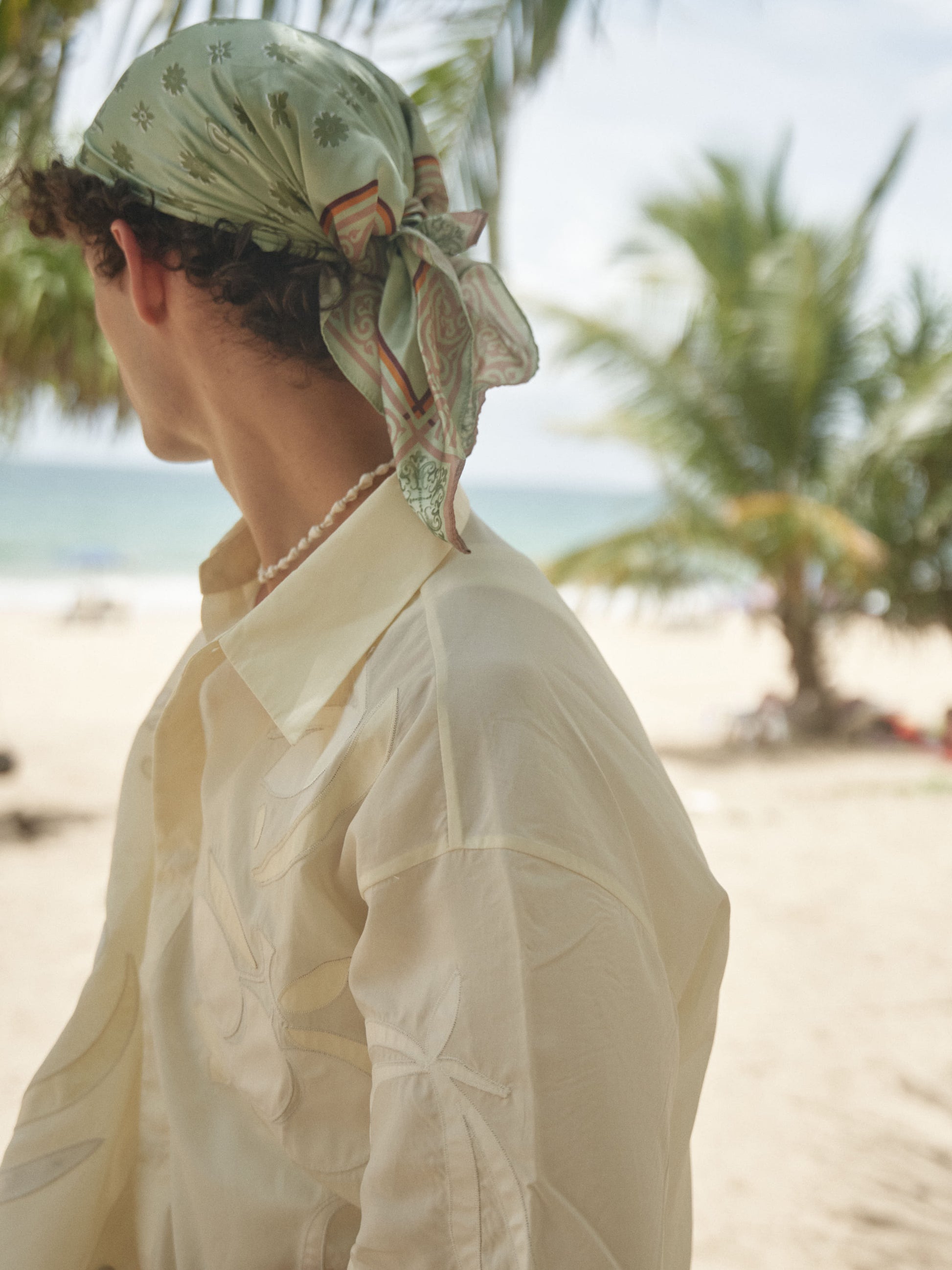 Retro21 R21 100% mulberry silk avocado color brand logo silk scarf