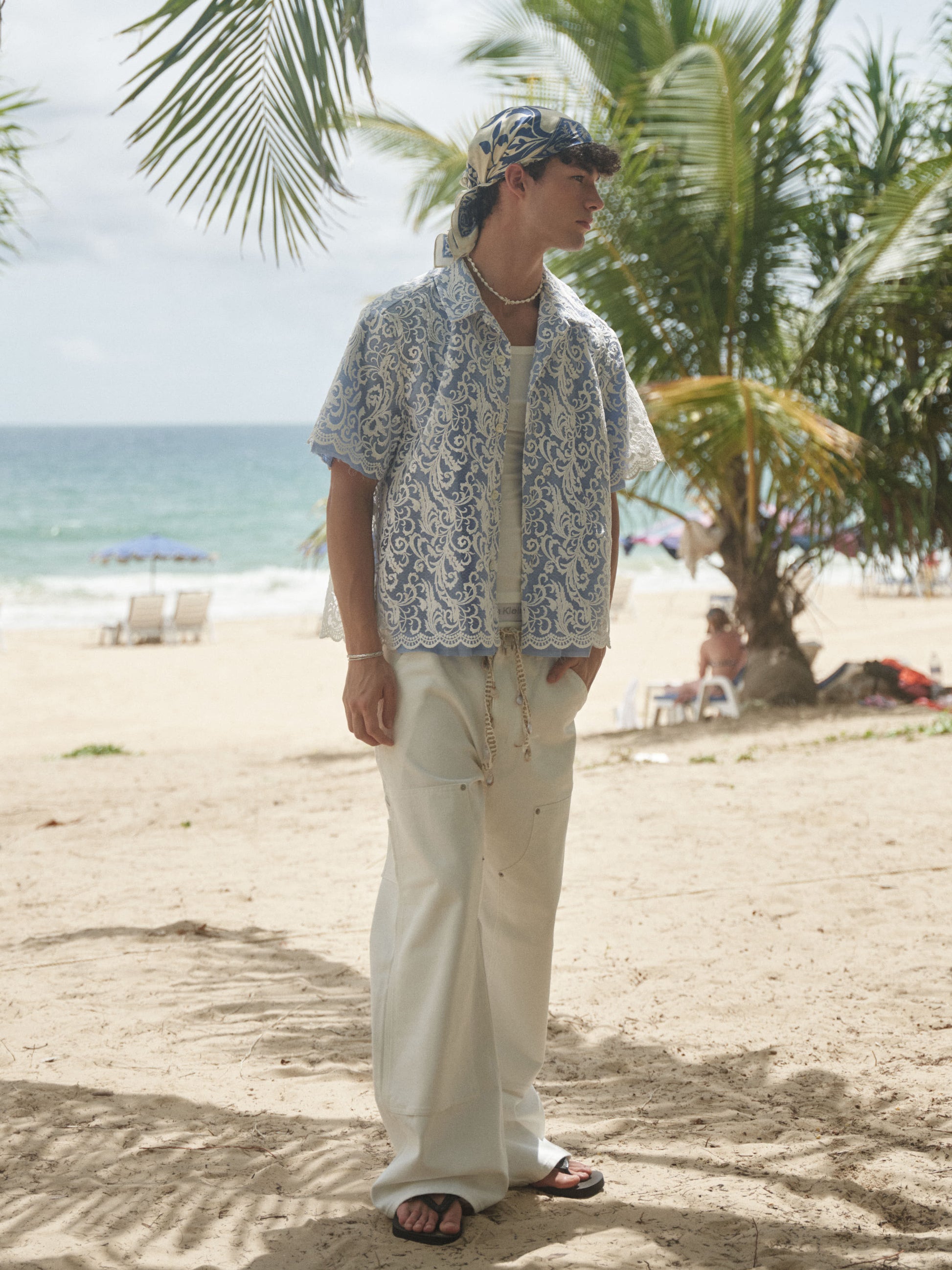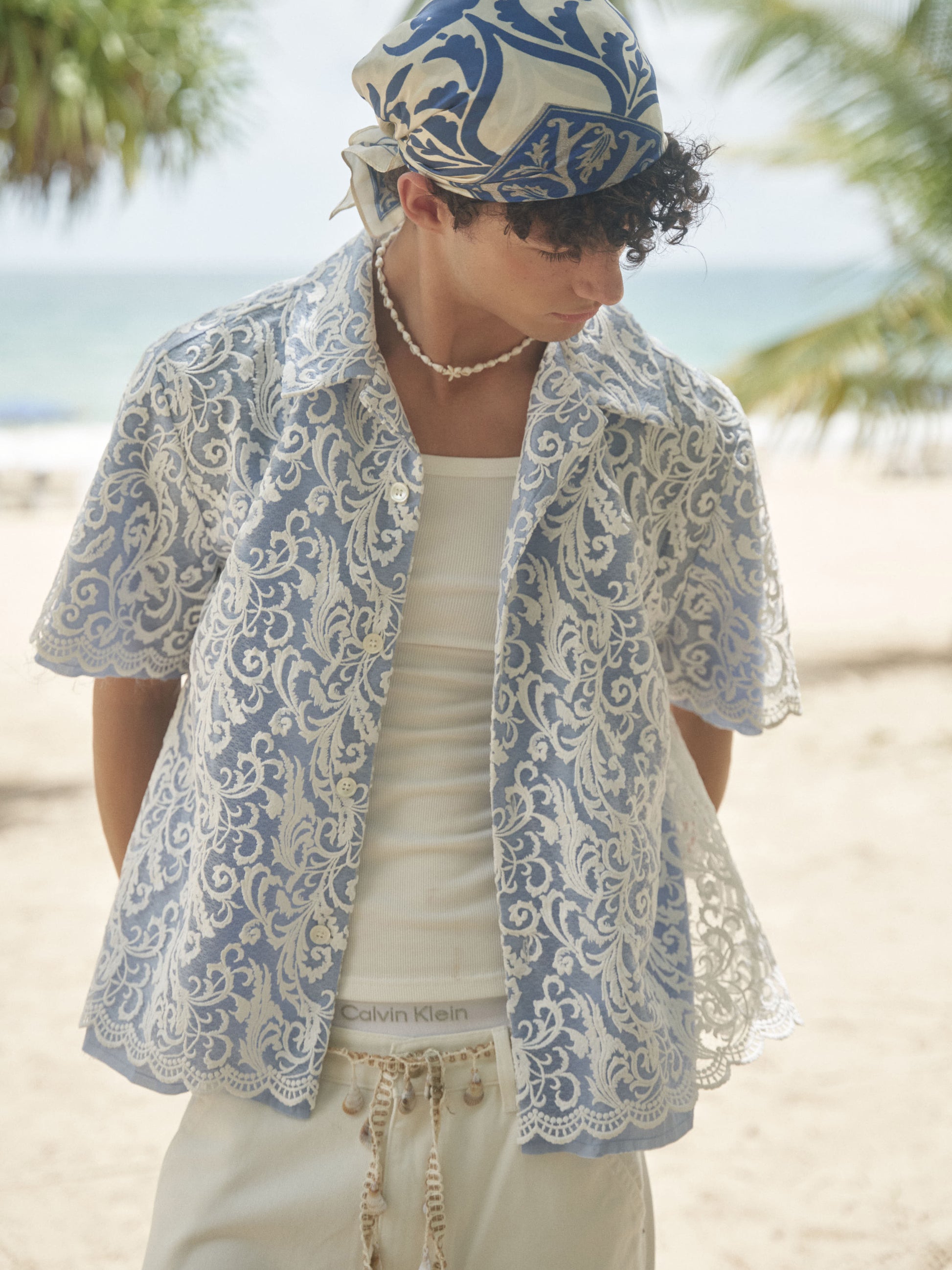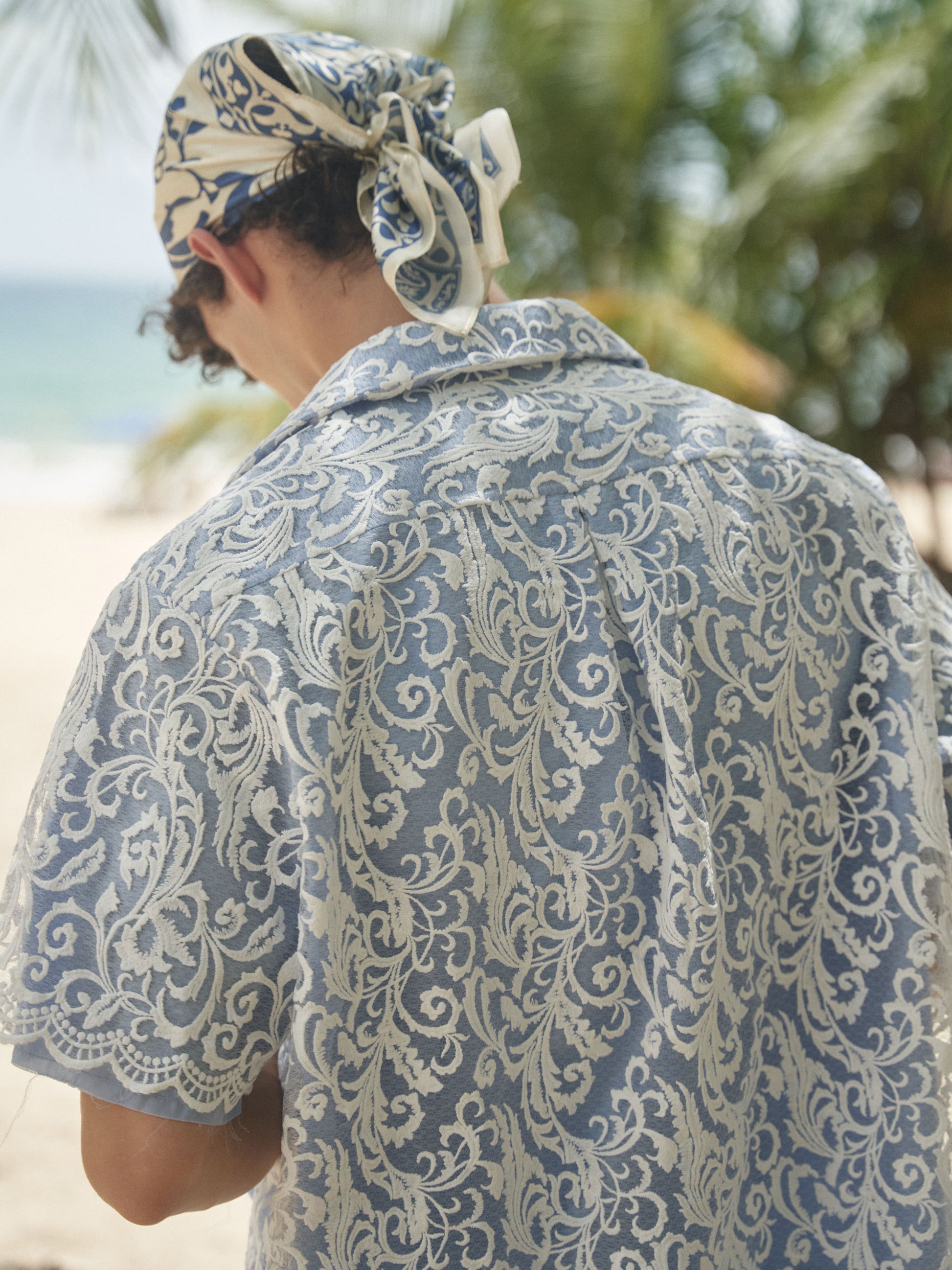 Retro21 R21 blue "Times Remake" collaboration retro silk scarf