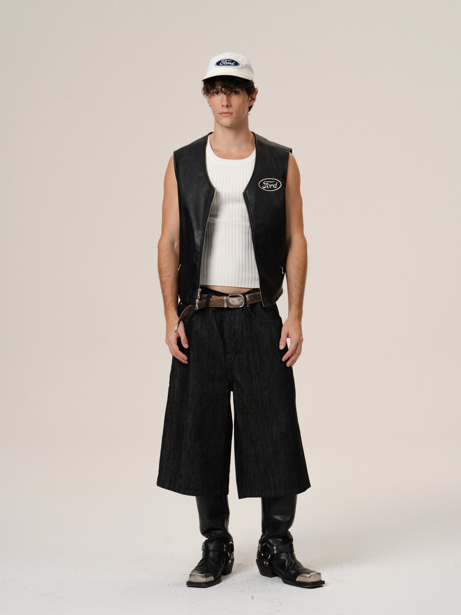 Retro21 R21 Custom red-rimmed black loose denim capri shorts