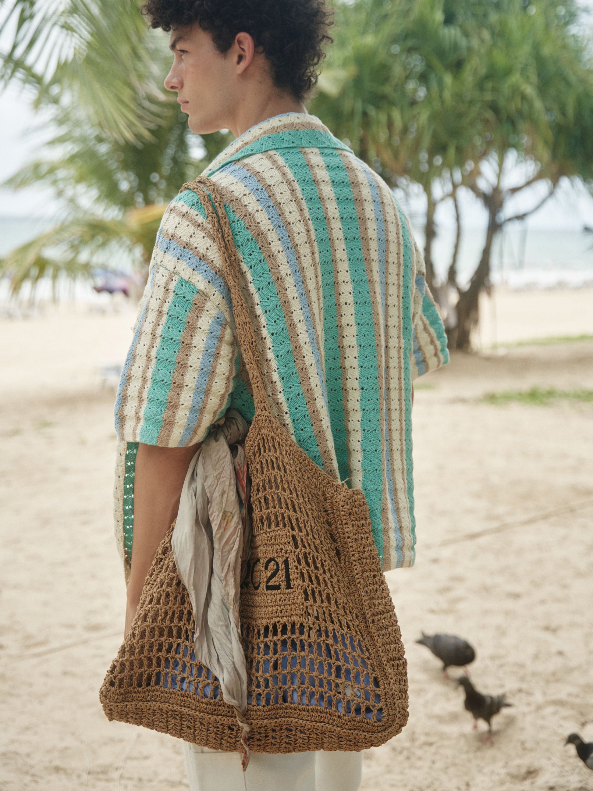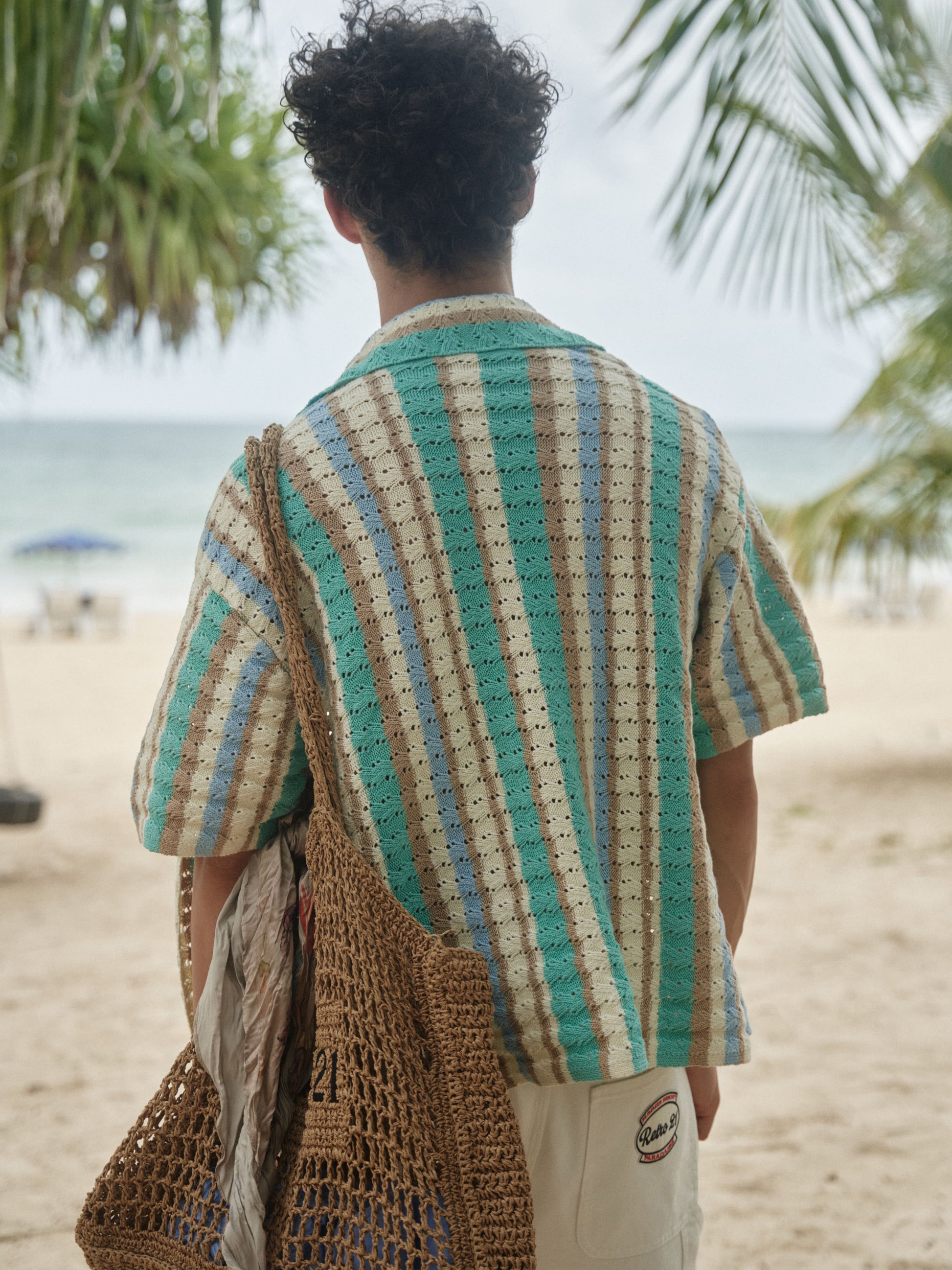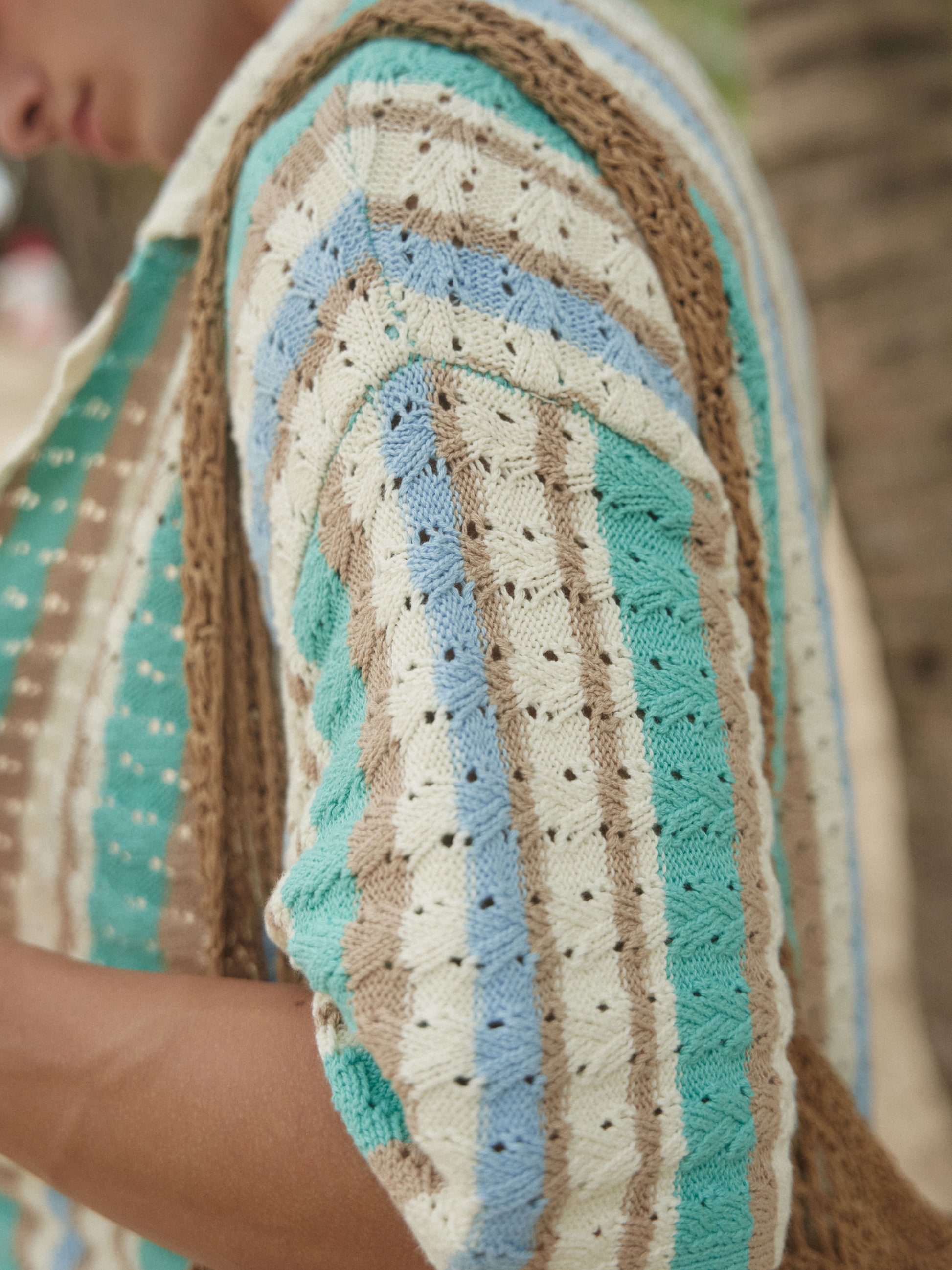 Retro21 R21 Summer knitted hollow striped short-sleeved shirt