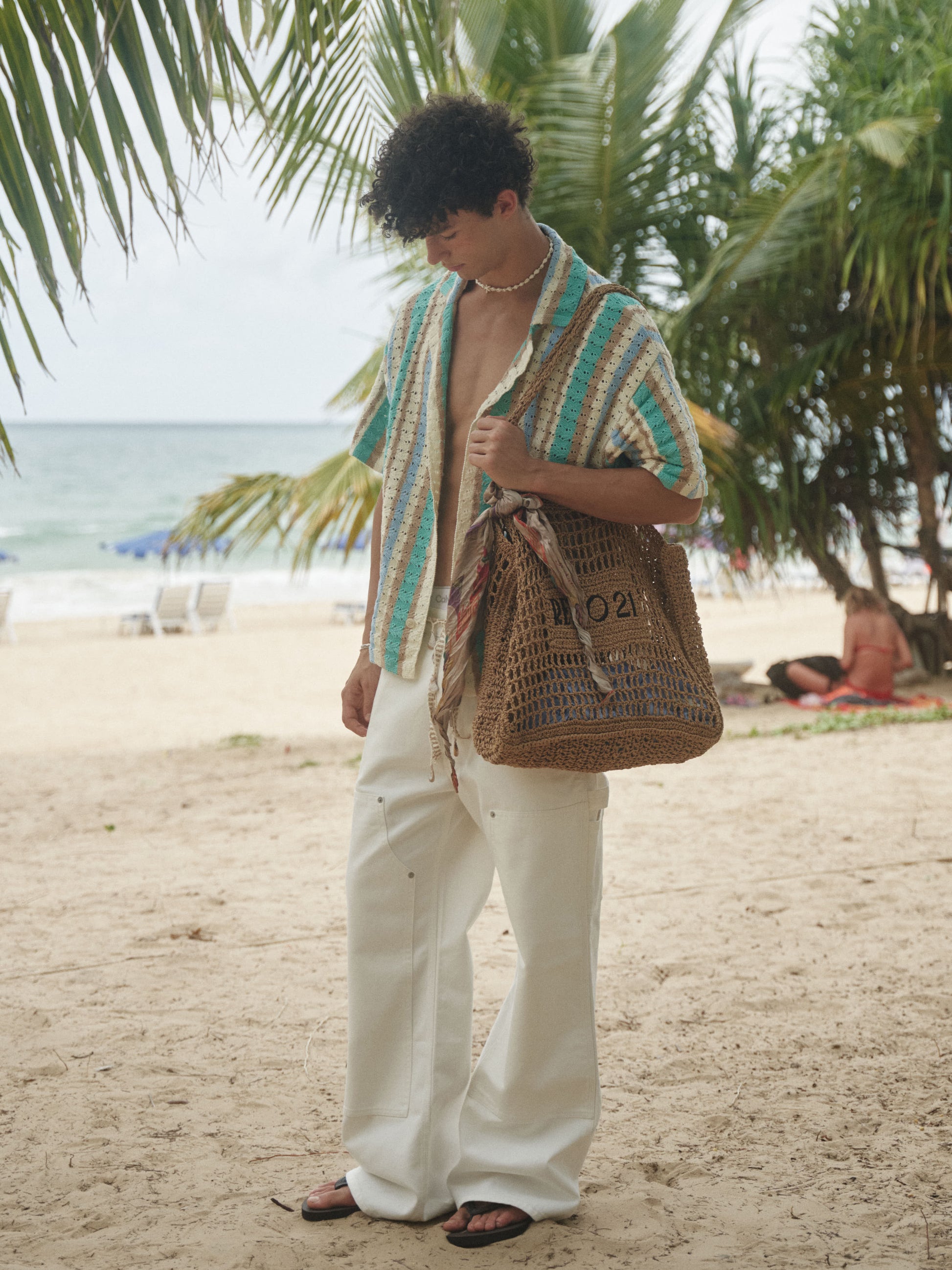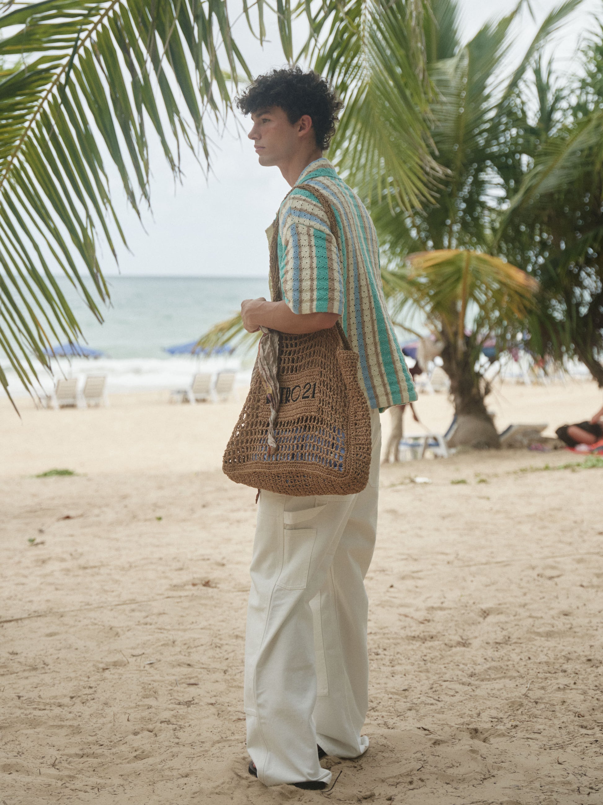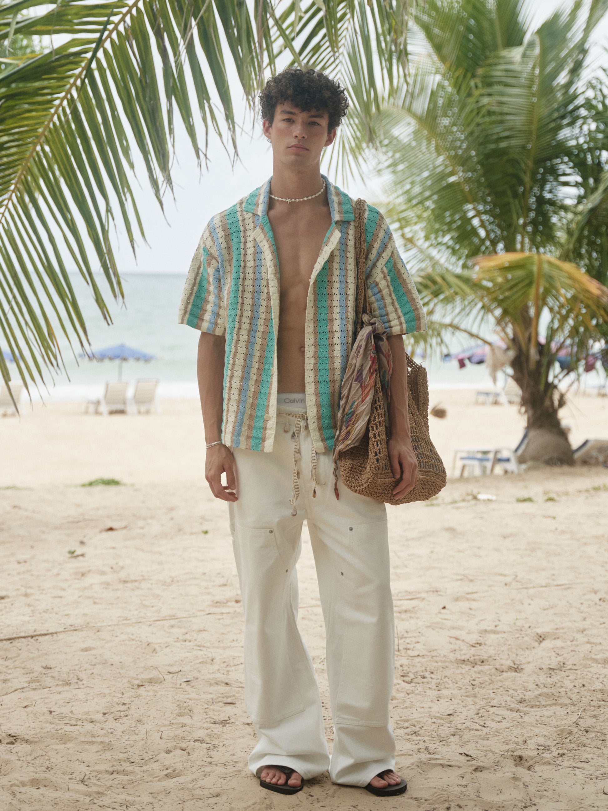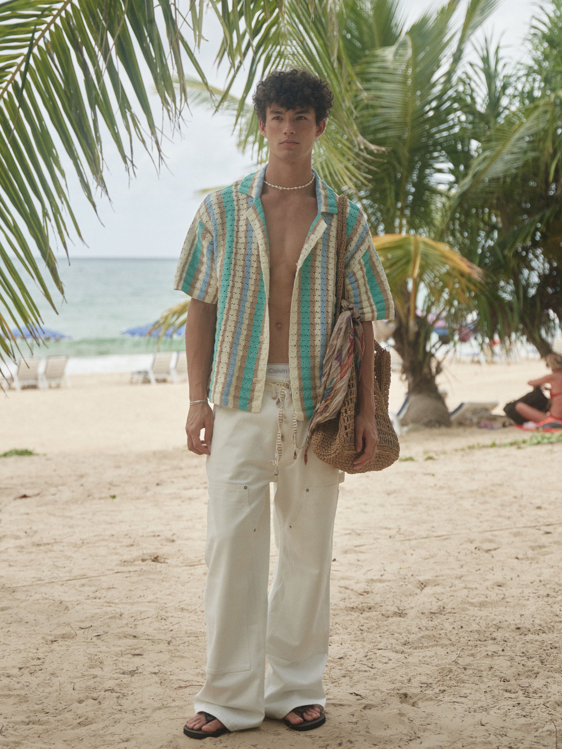 Retro21 R21 Summer knitted hollow striped short-sleeved shirt