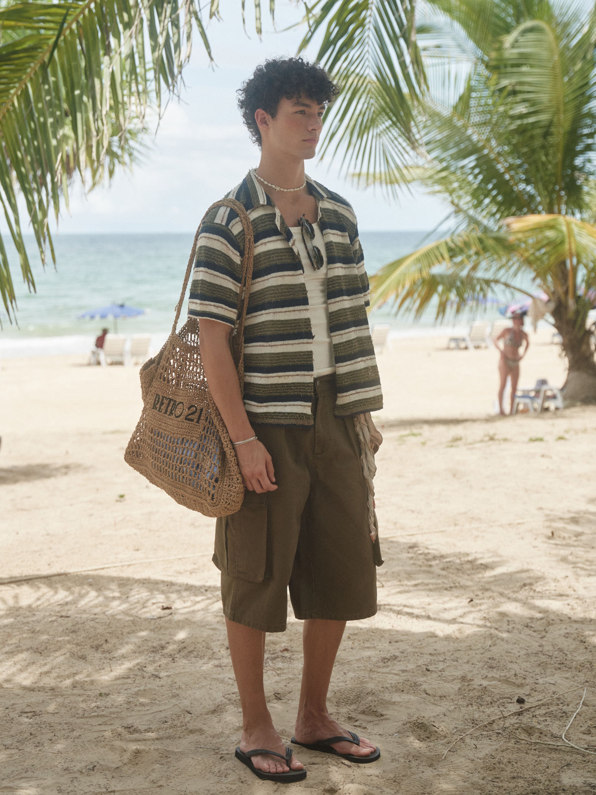 Retro21 R21 washed and aged dark brown wide-leg all-cotton seven-inch pocket pants